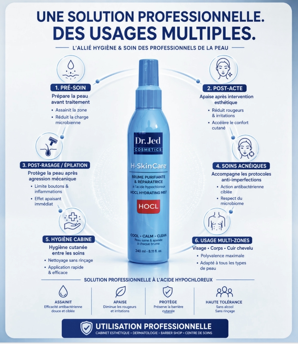 Accueil COSMÉTIQUES COSMÉTIQUES DR Jed H-SkinCare™ – Brume à l’acide hypochloreux (HOCL) 240 ml